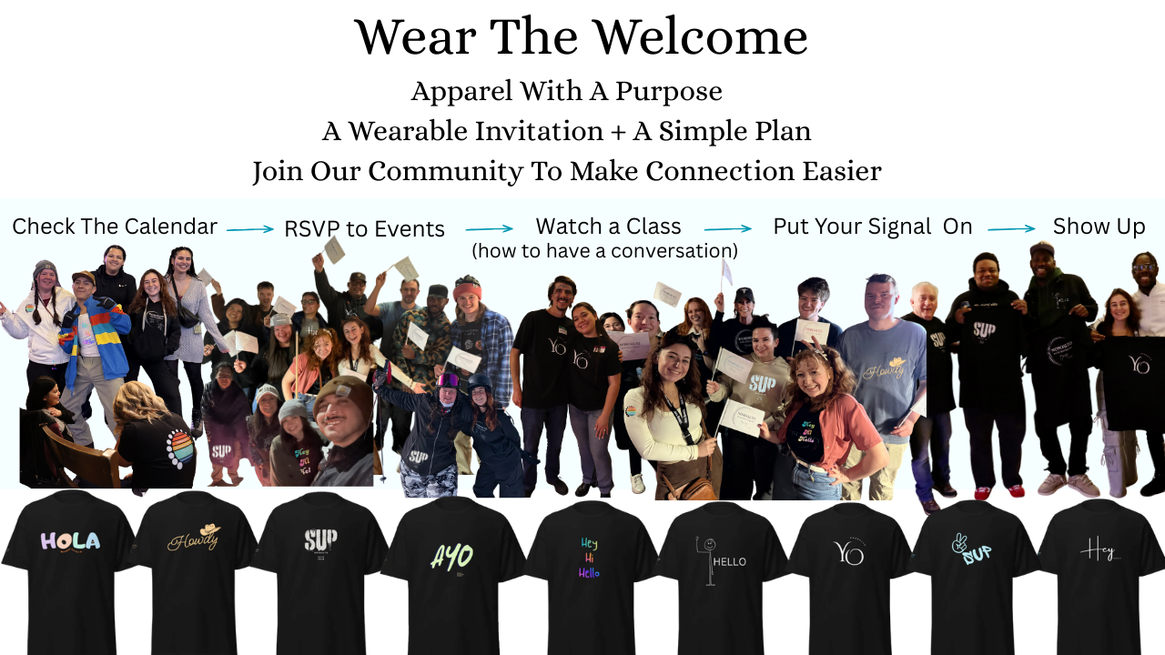 A clean, bold “hi” in streetwear form—made for people who want real connection without the cringe. Each tee is a wearable icebreaker: it gives strangers permission to approach, start a convo, and turn “awkward silence” into a quick moment of human connection.