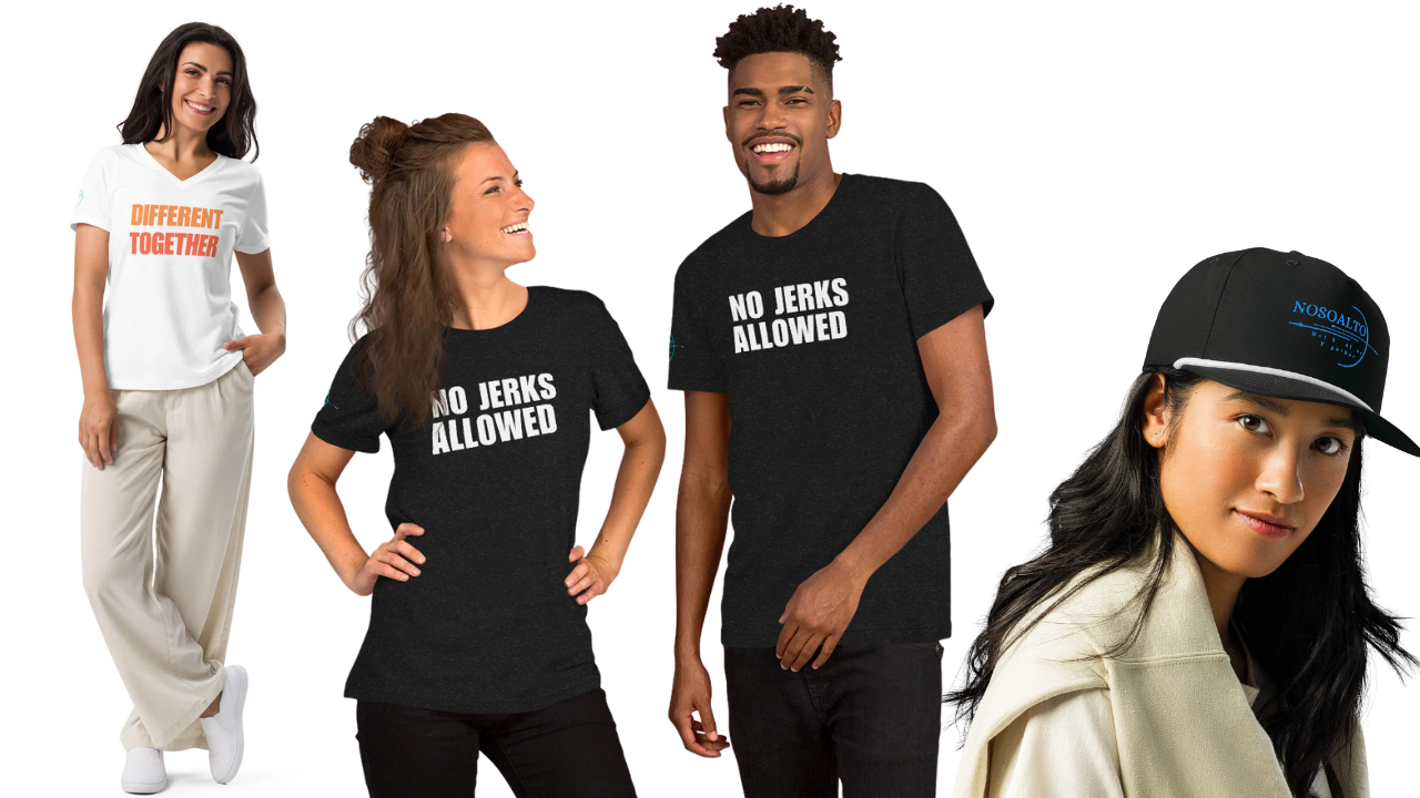At NOSOALTO We stand for something deeper than division: connection, respect, and our shared humanity.In a world full of noise, chaos, and conflict, we choose kindness. We believe that people—at their core—are good. We believe in listening before judging. In personal responsibility over blame. In growth over cancel culture. And in the radical idea that we can disagree and still stand together. NOSOALTO means Not So Alone Together. It’s not just what we wear—it’s how we live. Because if we can come together, respect each other, and truly see one another, then together, we can make the world just a little bit better.One shirt. One conversation. One human connection at a time.